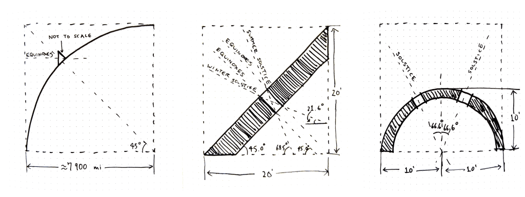 solar noon of the solstices or equinoxes—which in this project are architecturally